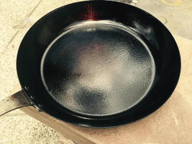 Now the carbon steel I wont take above 400 in the seasoning process because they can and will warp,more so with the thin cheap stuff.
