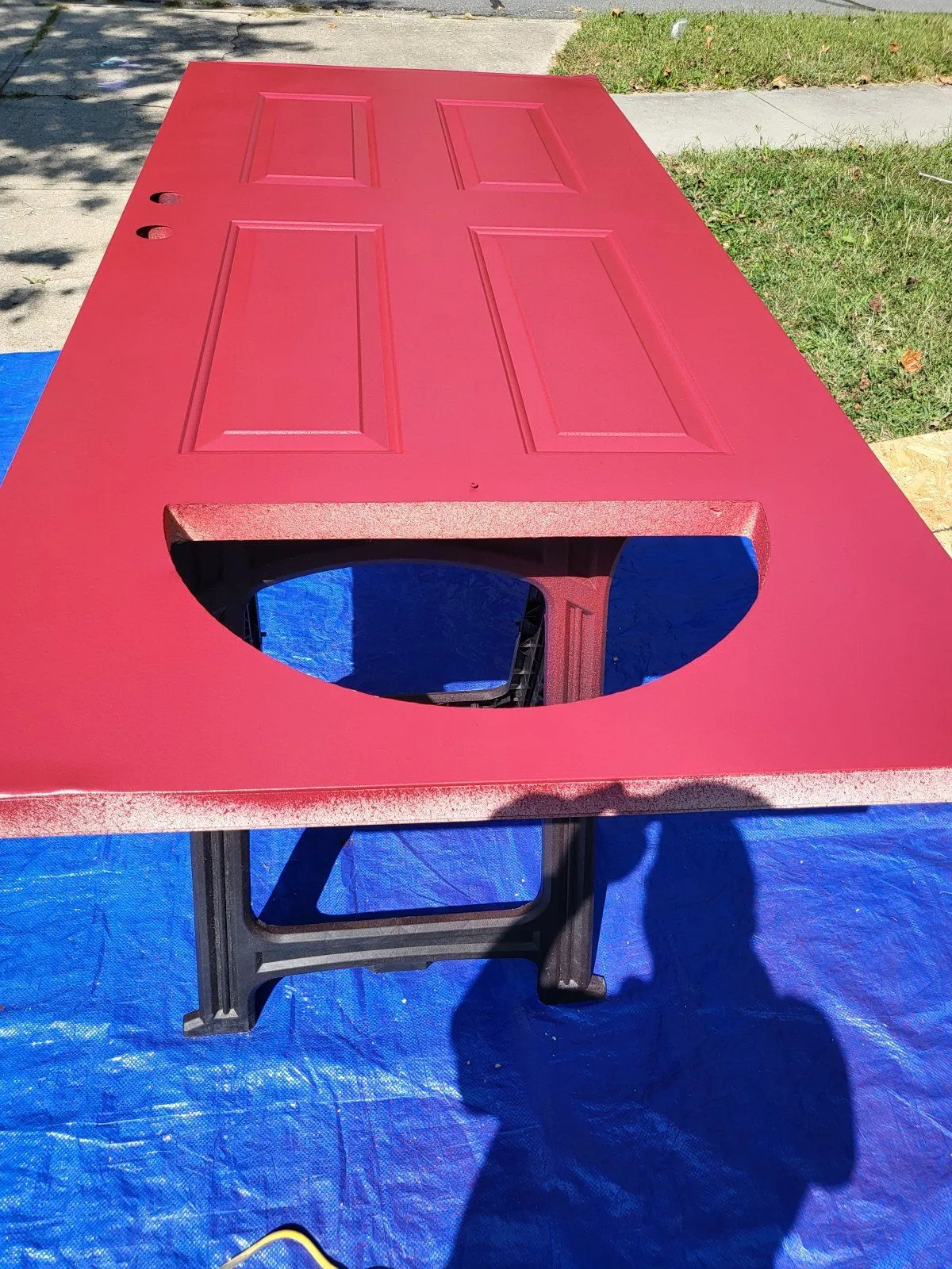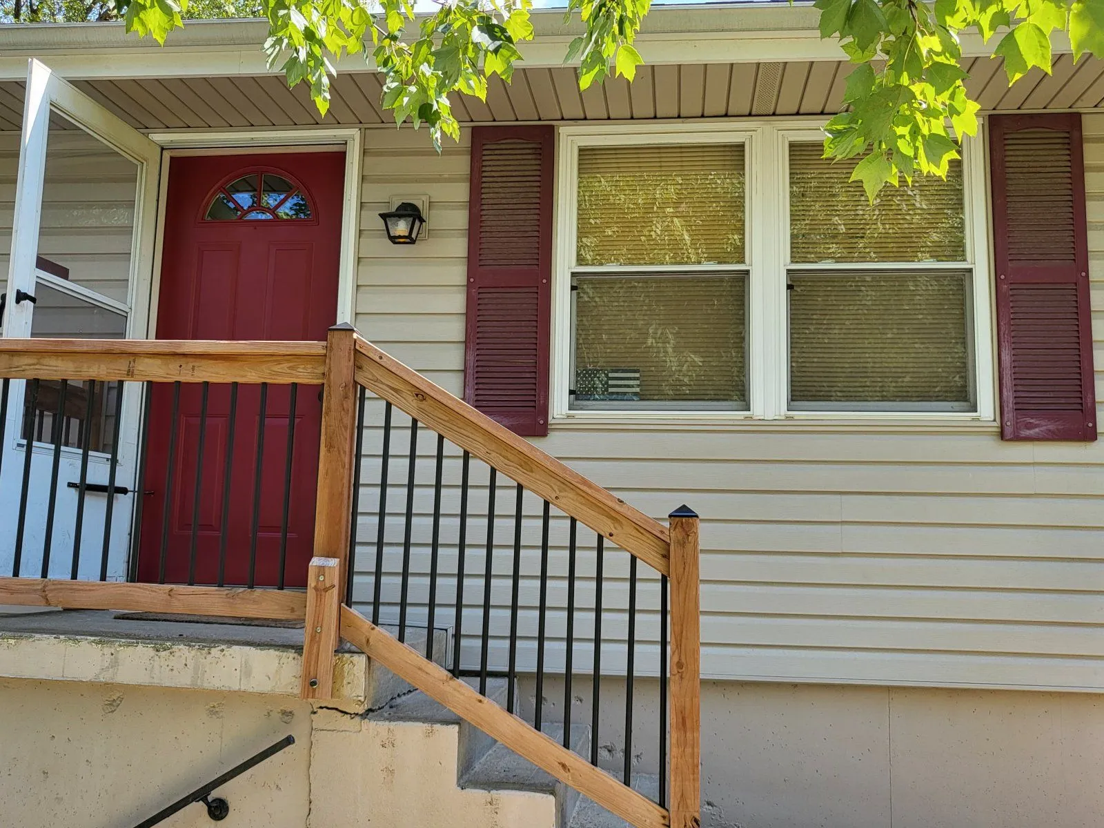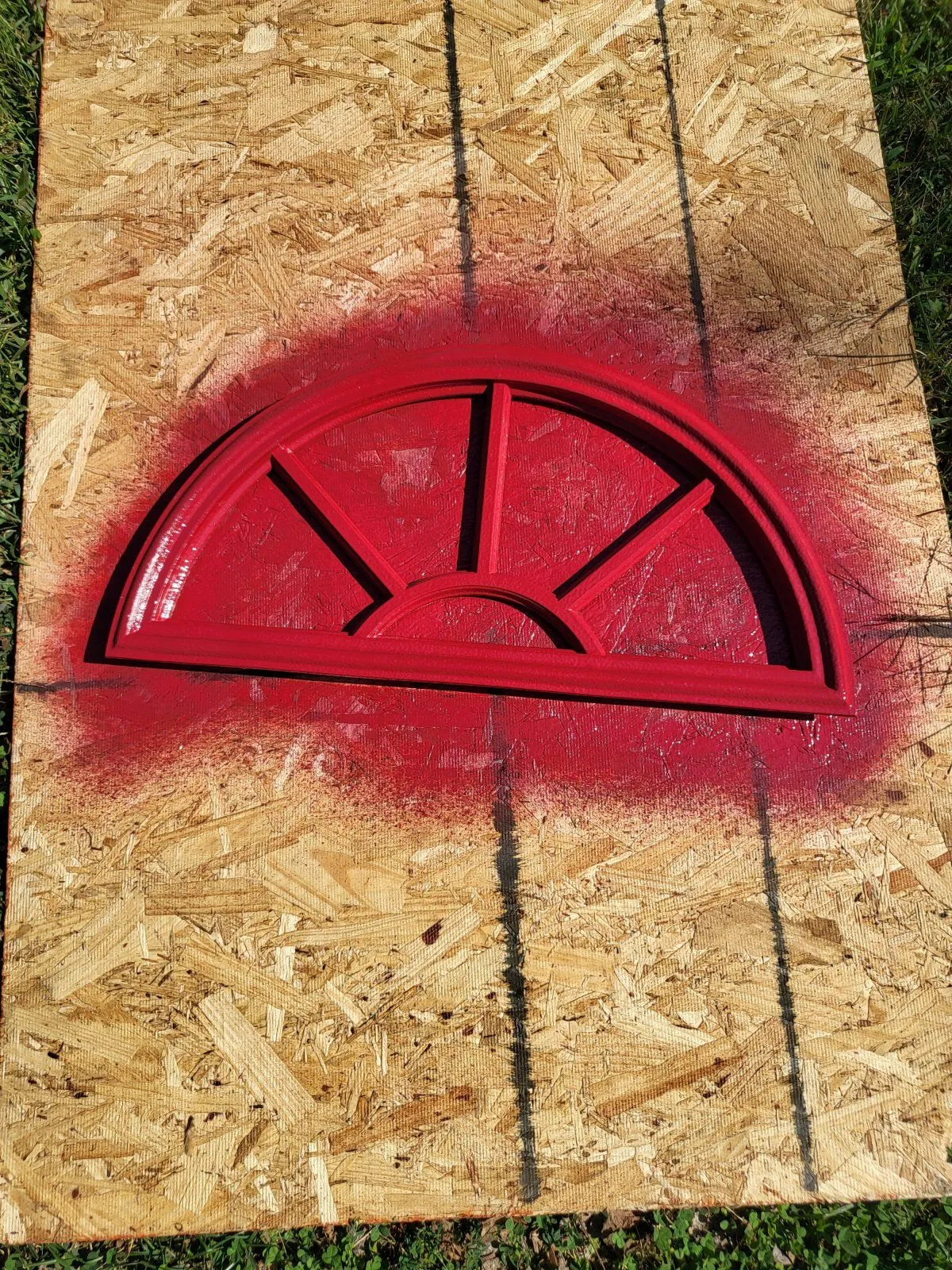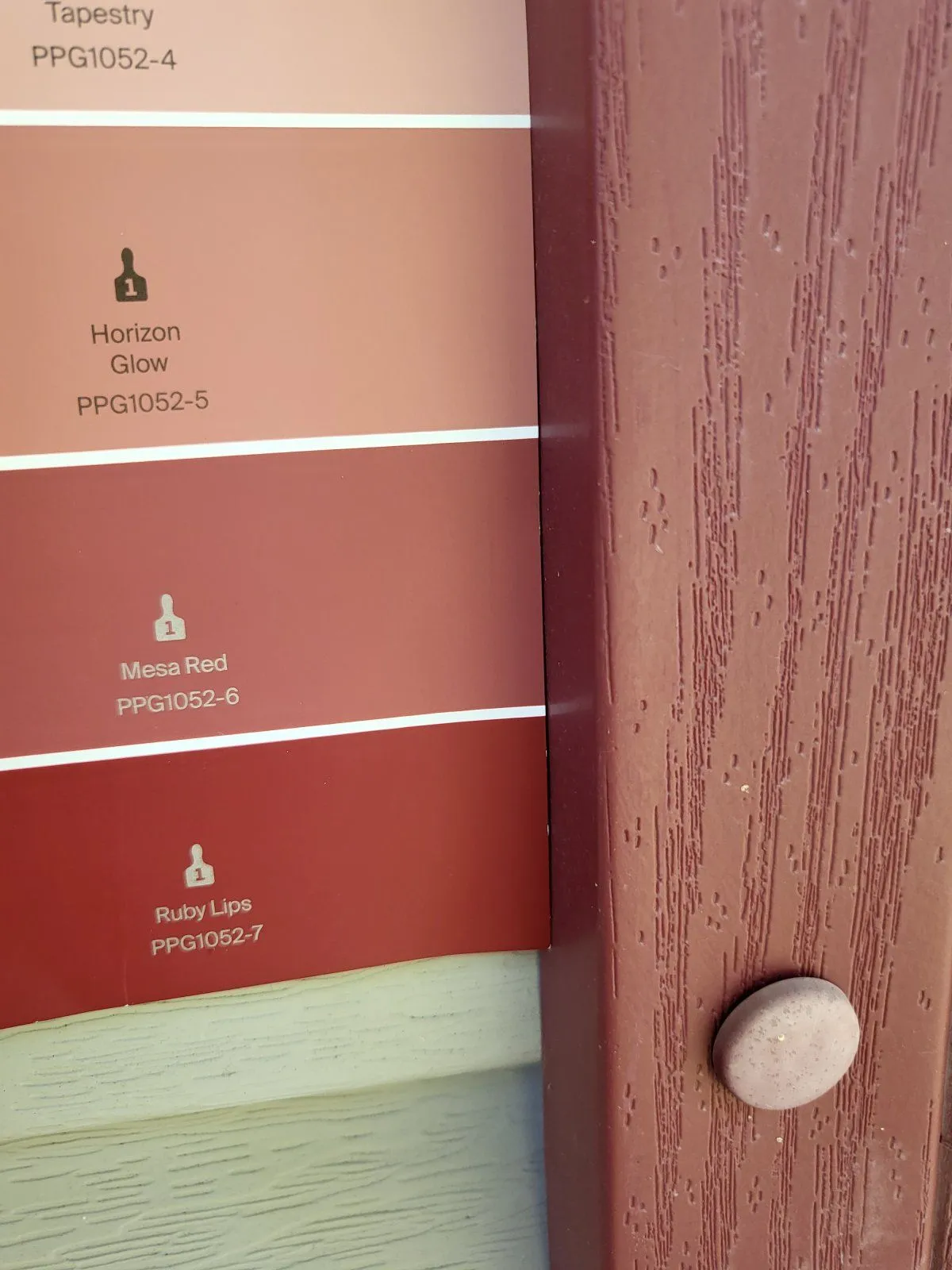 Pretty bright, alright. I doubt getting a perfect match out of a can. Lowes and HD pretty good at matching if you want to go to brush on. If your house, Classic Craft may be the way to. I like the TT stain kits, everything necessary being all in one package, and they have the largest selection of color and shading available for theirs or anybody else's stainable fiberglass product, as I am a hands on kind of guy on my own finish projects. If you decide to go that far, follow the directions to the letter. There are no shortcuts.