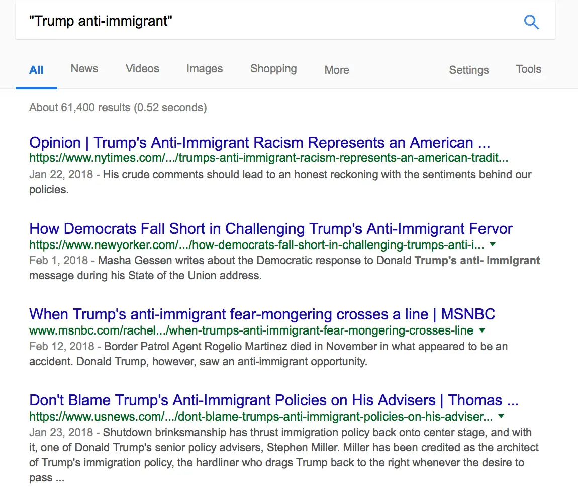Headlines like these when I do a Google search "Trump anti-immigrant"