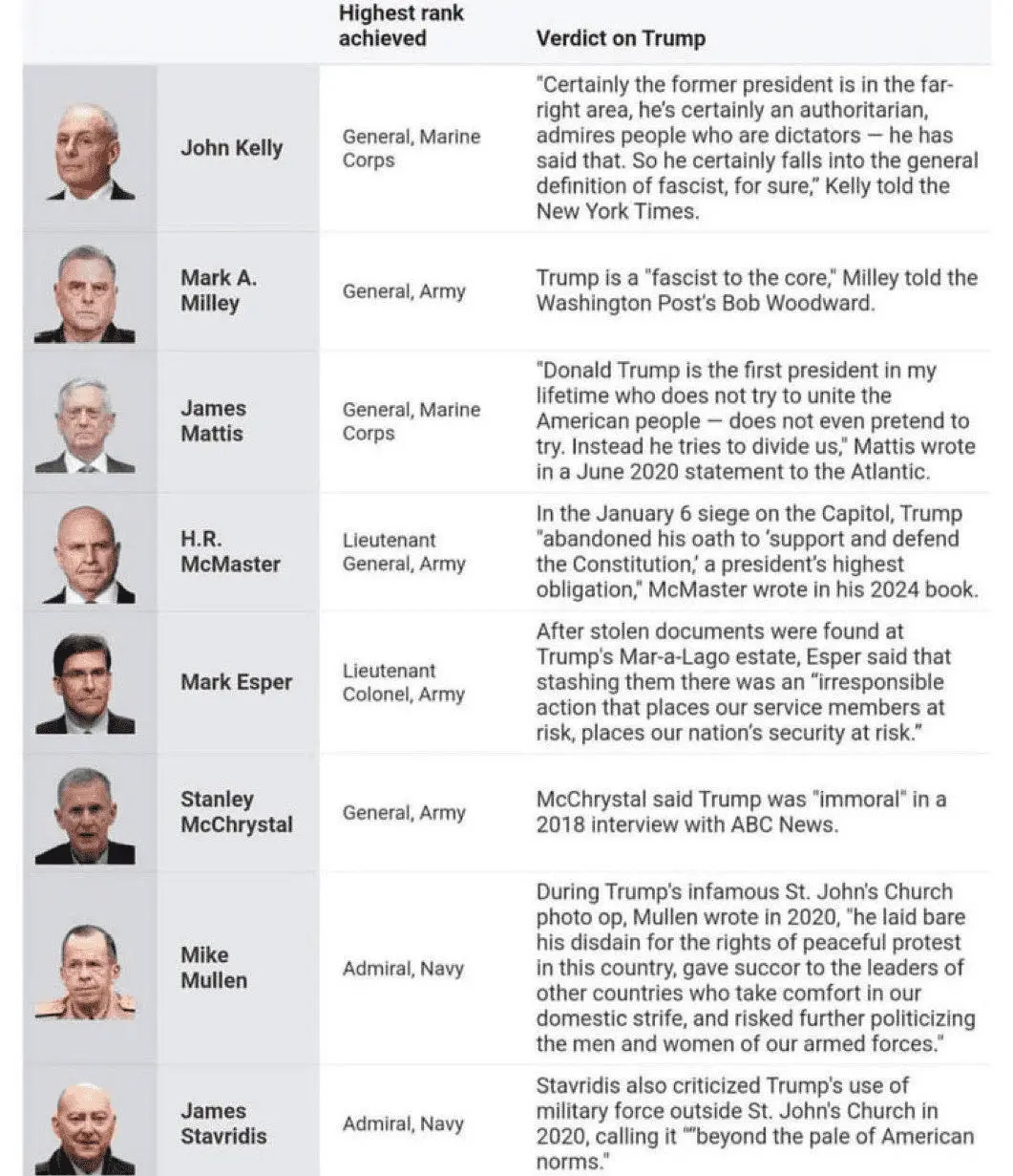 Wow! What an indictment...Military people hate Trump!