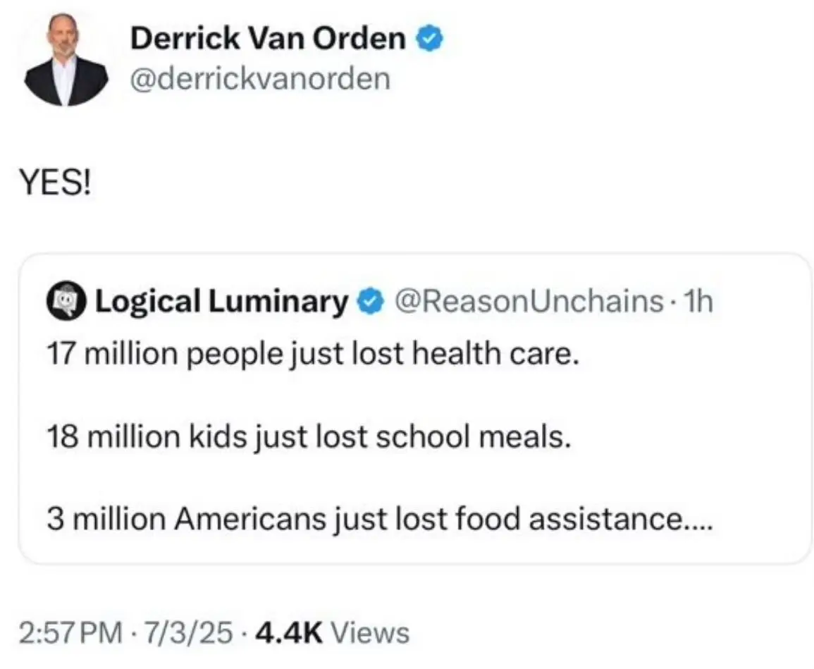 Representative Derrick Van Orden is apparently excited for all the benefits Donald Trump’s budget strips away.