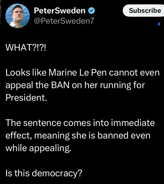 Le Pen’s lawyer said she would appeal the verdict but she will remain ineligible while she does and so could be ruled out of the 2027 presidential race. Le Pen won’t serve the house arrest sentence until all appeals are exhausted but the ban on running for office will be implemented immediately despite her legal challenge.