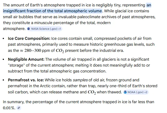 Really, so if the top layer is 12 inches of snow originally, that is 11 inches of gas originally. A mile down, it becomes compressed to a small fraction of an inch. A "tiny bit" of 8 million cubic miles of atmospheric gas compressed 50+ fold.... LOL....400 million cubic miles of gas at surface air pressure....
