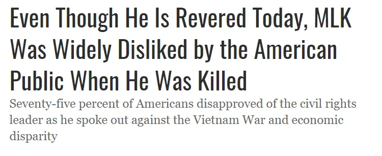 I was alive when King lived and saw how he was hated by whites. To hear white “conservative” republicans tell it, King was widely accepted and loved by the white community. King was called everything whites call blacks who oppose white racism continuing today. I know because I heard them saying it. King was loved so much for his dignity, non-violence and responsibility that “conservative” whites claim to champion that a white man ended his life using ultimate violence. And now whites want to try telling us what King stood for. Ain't that about a.........