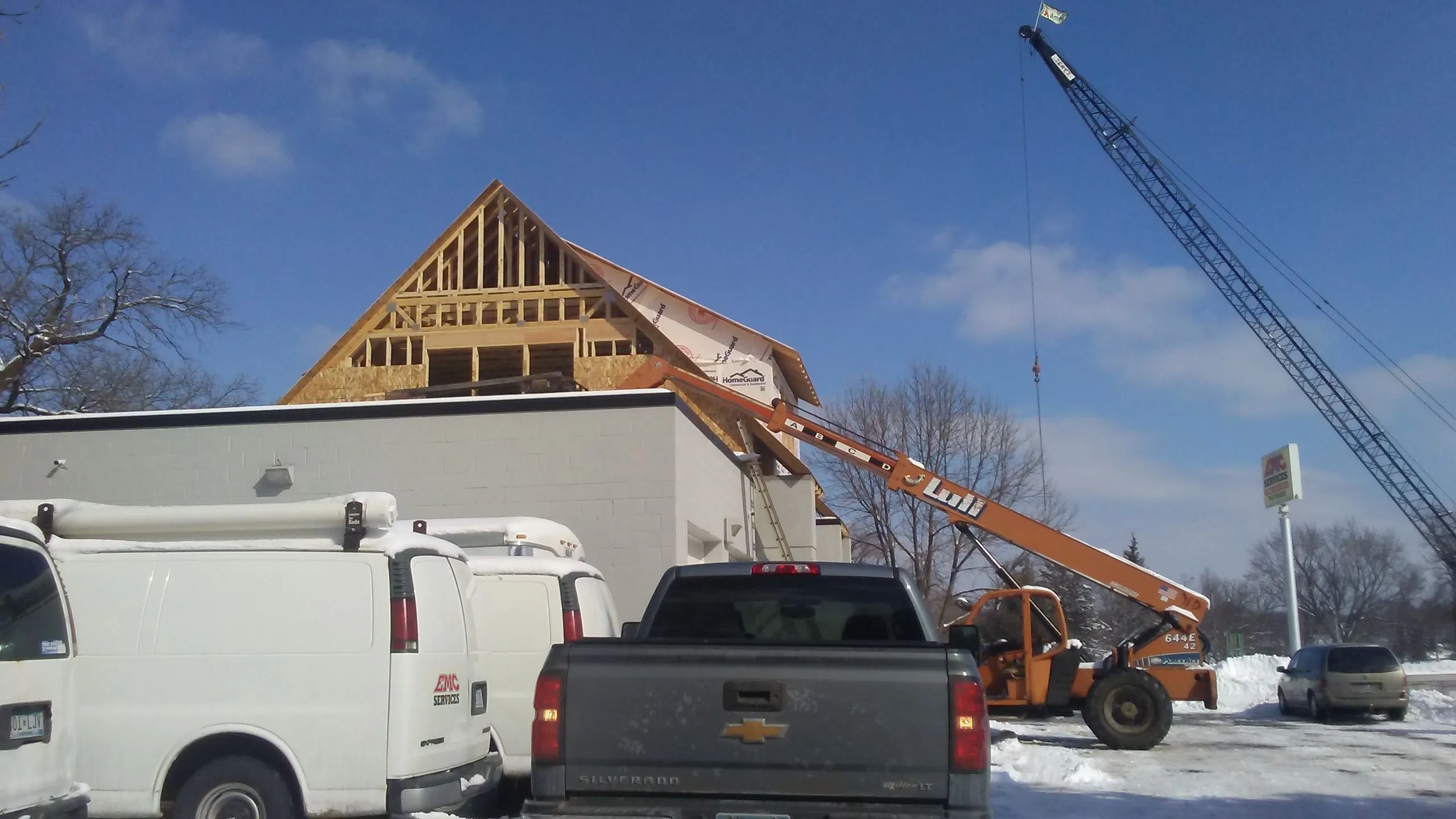 They tried making a brick laying machine to replace me but it never seems to work out, damn it!When they find a machine that can lay roof sheeting on a 12/12 pitch, in the wind, during a cold winter...what I was just doing before I took lunch.