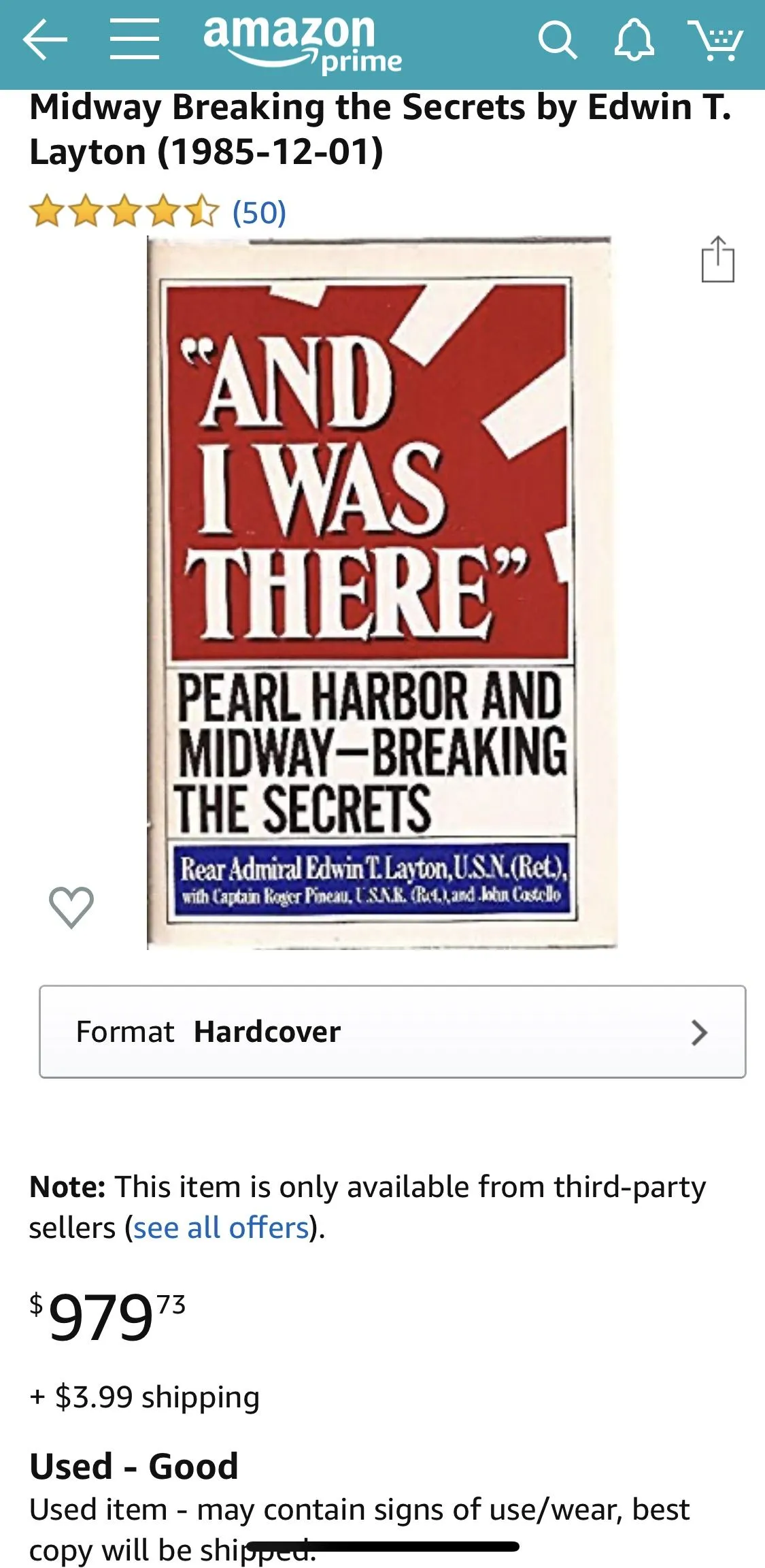 In this case it’s the autobiography of the man behind breaking the Japanese code in WW2. The recent movie Midway has sparked great interest in the man and the events.