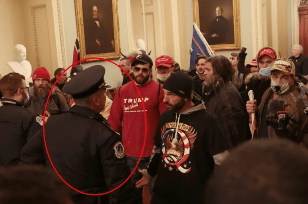 Julie Kelly reports: A newly-obtained video shows United States Capitol Police officers speaking with several January 6 protestors—including Jacob Chansley, the so-called “Q shaman”—inside the Capitol that afternoon.