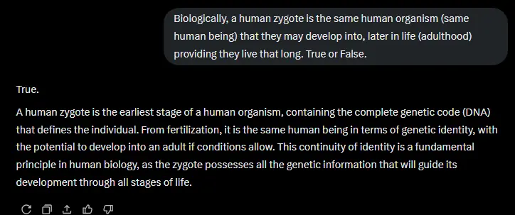 Biologically, we are the same human being/ organism at adulthood that we were at the moment of our conception.