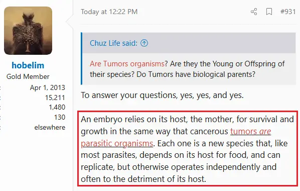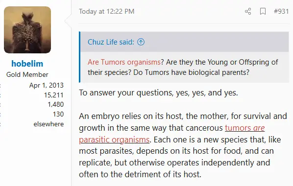 (tumor are still not organisms)