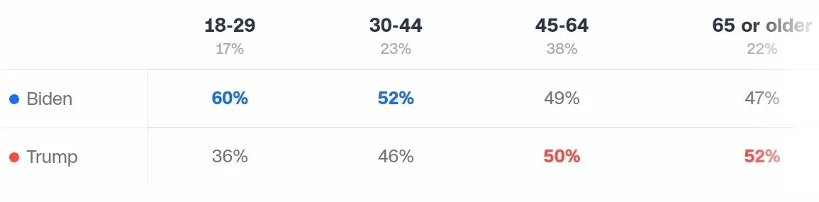 Trump's biggest voting bloc...Yeah, 65 and over... you know, the Republican base.![]()