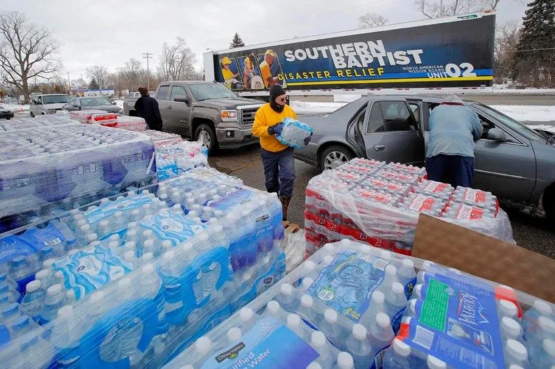 The Southern Baptist Disaster Relief organization was in Flint Michigan. This religious organization has over 65,000 trained volunteers. 1550 Mobile units with showers, water purification, as well as child care and other things.