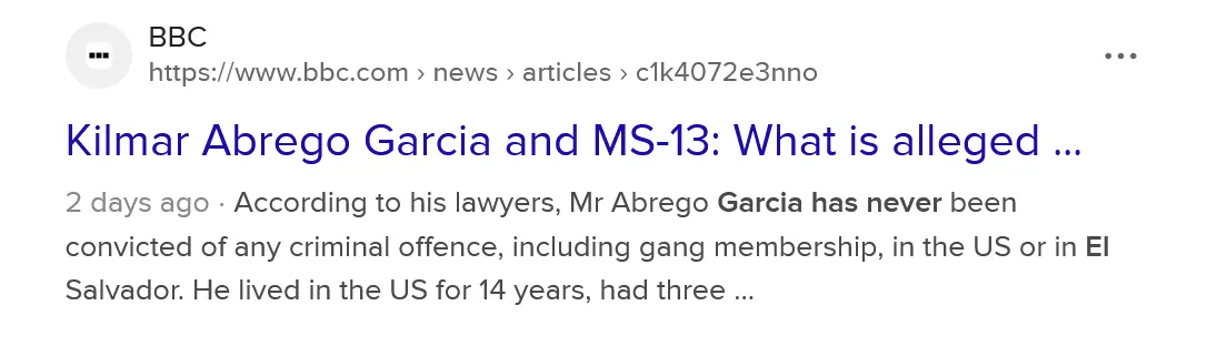 Mr Abrego Garcia has never been convicted of any criminal offence, including gang membership, in the US or in El Salvador.