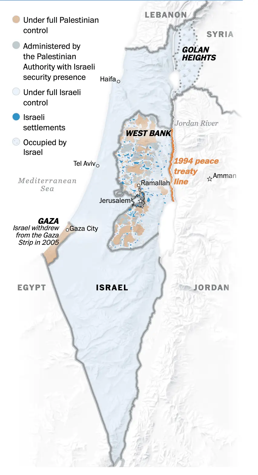 Eliminating the brown areas seems like a good idea.The Likud party use it.... Between the Jordan River and the Mediterranean Sea there will be only one state, which is Israel.
