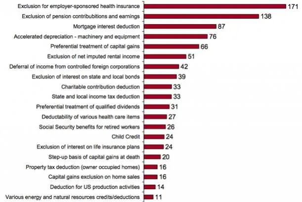 That's right the #1 tax deduction at $171 billion in 2012 was what your employer deducted from taxes that paid your premiums!