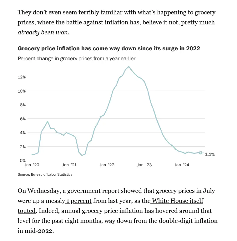 Kamala Harris said that's "excessive," and she wants to impose price controls on food.