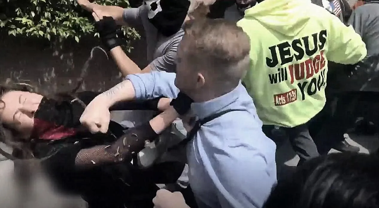 is Robert Rundo, street gang leader from Queens ("The Original Flushing Crew"). Filmed stabbing a gang rival seven times in those street gang days. Neo-Nazi and leader of RAM (Rise Above Movement), a prison-culture-inspired white nationalist/racist/anti-Jewish group of vigilantes that travel to rallies to disrupt and assault people. His face shows up again and again in these riots.