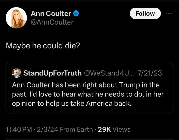 Oh, were you in the room with them?Bill Maher is still embarrassed that he had sex with Ann Coulter.![]()