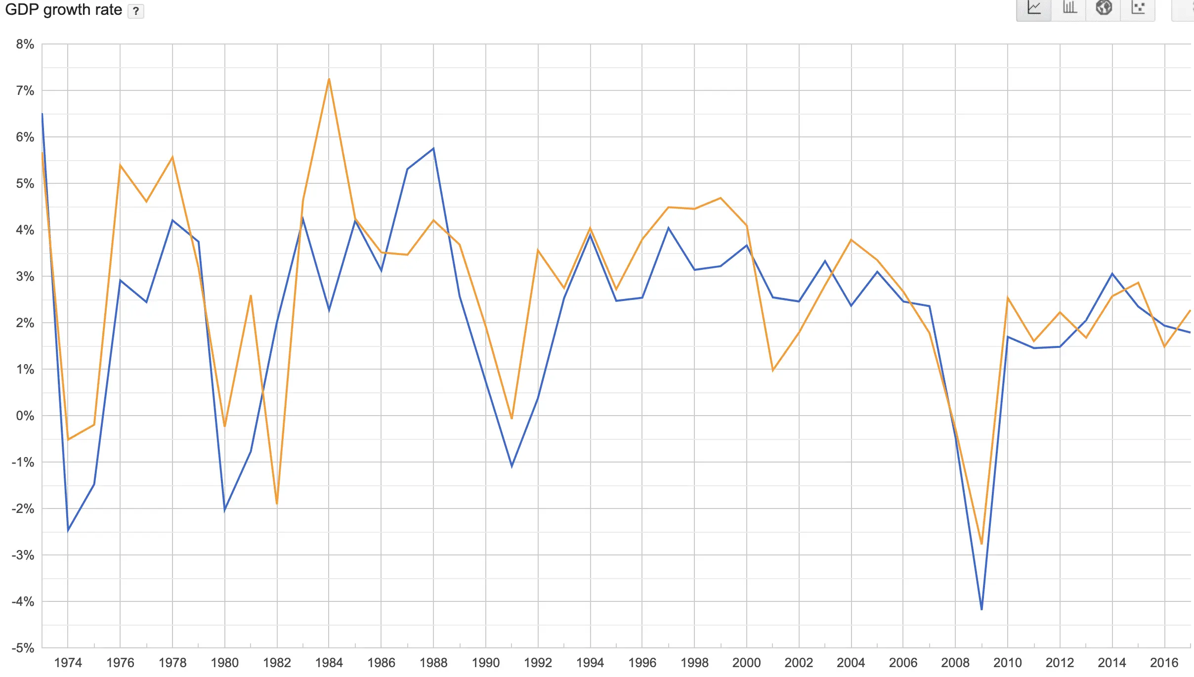 Leave up to you to figure which one is US and UK... Alright for a country with less Natural resources and no cheap Mexican labour force....