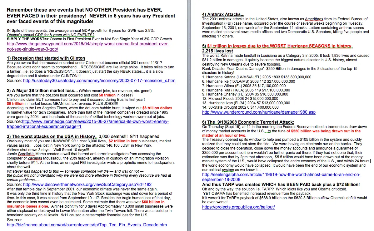 Also... during GWB these cataclysmic events occurred... WHAT HAPPENED Under Obama of the same Magnitude? NOTHING ZERO. ZILCH!!!