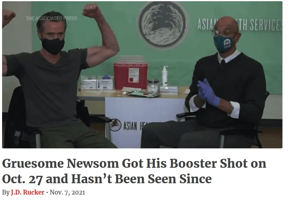 Gruesome Newsom Got His Booster Shot on Oct. 27 and Hasn't Been Seen Since - 🔔 The Liberty Daily