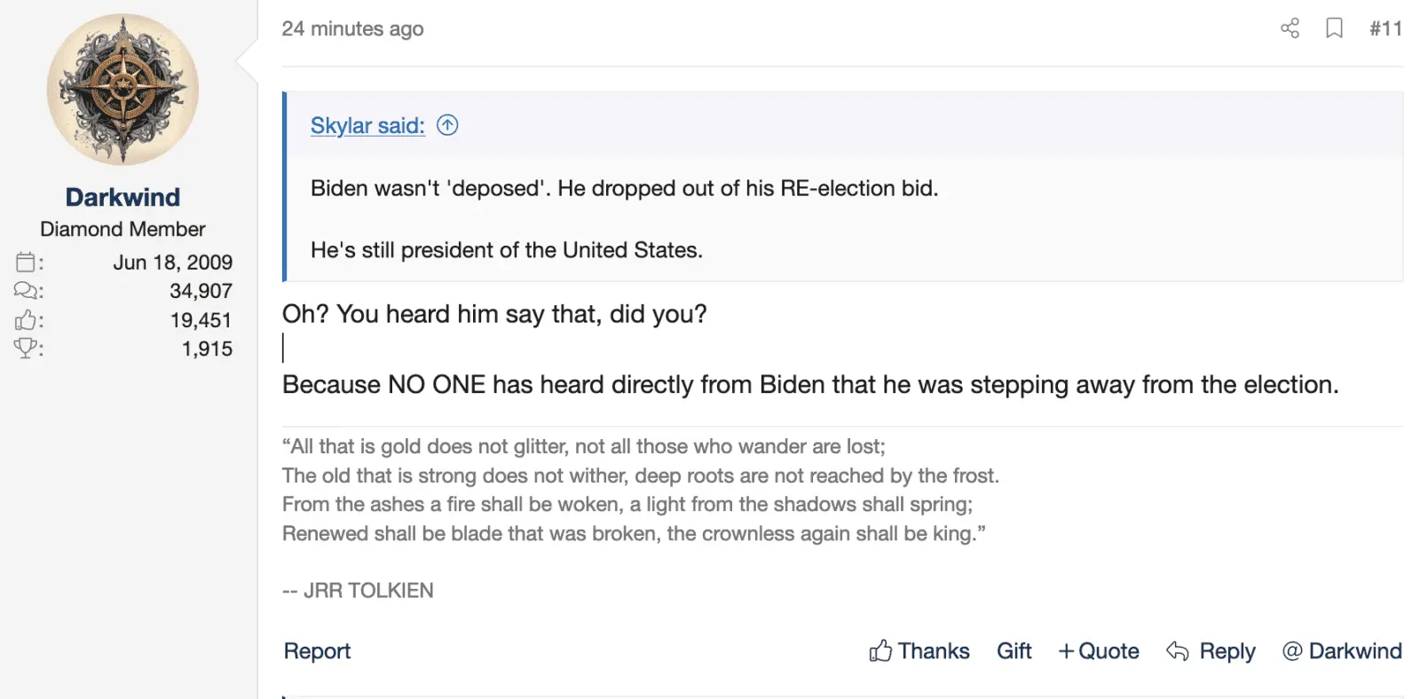 Again, your conspiracy doesn't make the slightest ******* sense. Why forge a document detailing Biden's withdraw from the election when he ACTUALLY withdrew from the election?