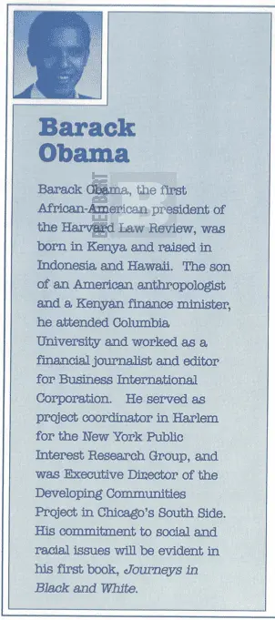 A variant of this item paired the image shown above with the statement "Big Oops! Harvard Law Review did not cleanse its 1991 yearbook which states he was born in Kenya." As noted above, the biographical sketch pictured above was put out by a literacy agency; it was not part of any yearbook published by Harvard.