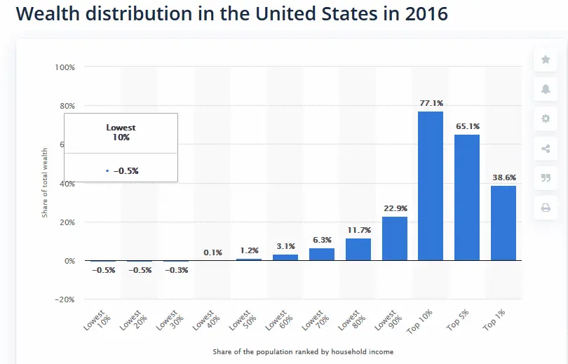 In the first quarter of 2025, almost ********** of the total wealth in the United States was owned by the top 10 percent of earners.www.statista.com