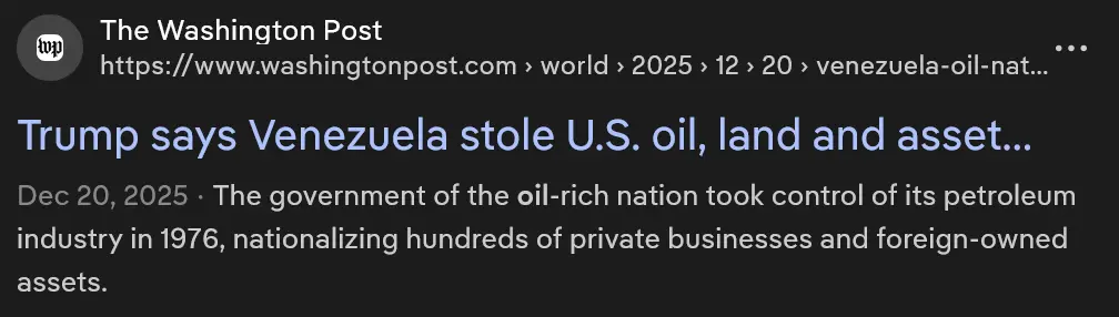 The oil companies took a gamble and lost. Why should the US government intervene, neocon?There would have been no nationalization of Venezuelan oil industry if that asshole Republican President Gerald Ford, had any balls or a clue.
