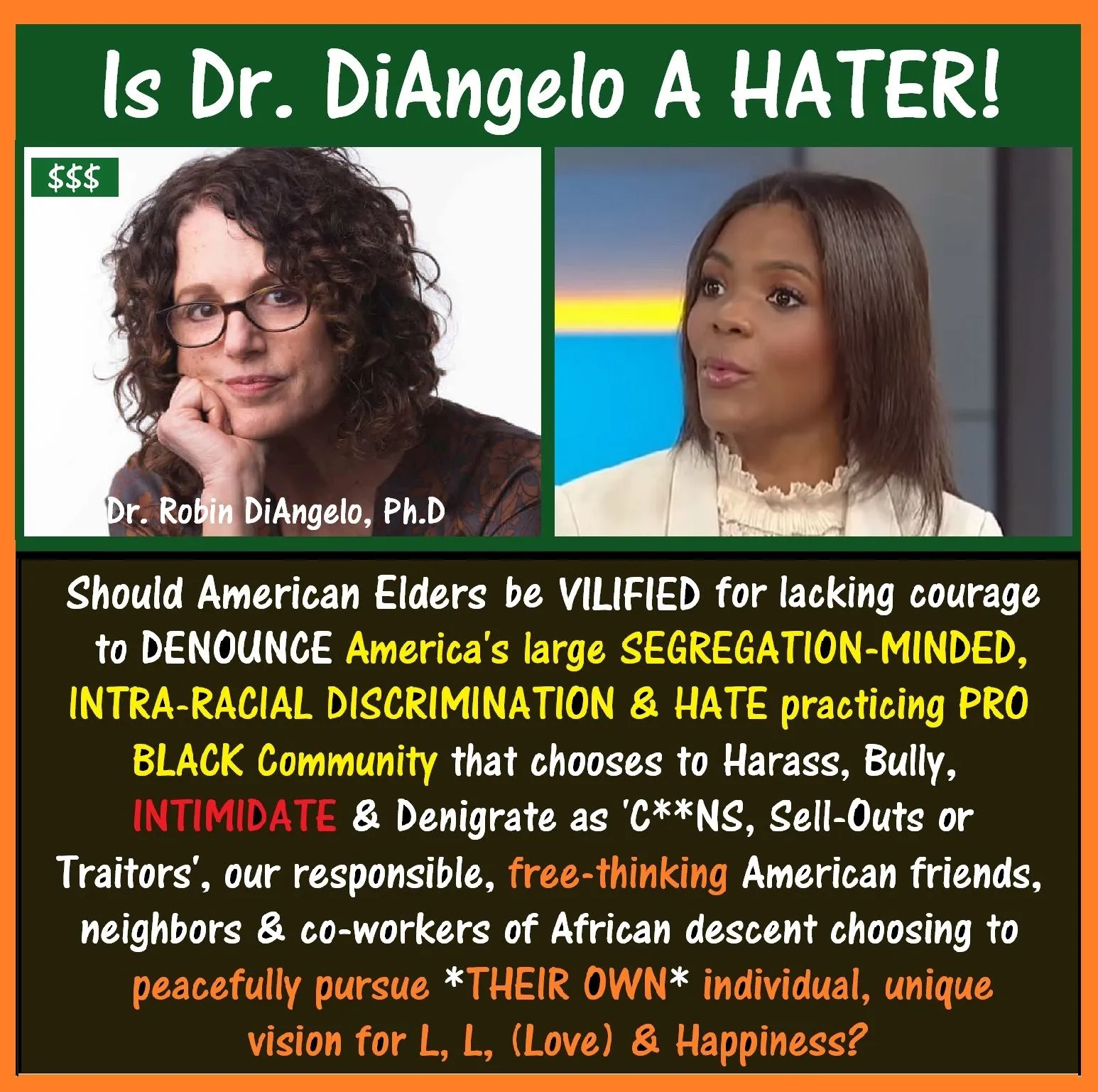 Hello. Frankly, I sincerely believe evidence demonstrates that for-$PROFIT$ author and world renown "white fragility" lecturer Dr. Robin DiAngelo, Ph.D joins millions of American citizens WILLFULLY IGNORING America's *CHILD CARE* PUBLIC HEALTH CRISIS, aka America's potentially life scarring SYSTEMIC & GENERATIONAL Culture of African American Child Abuse, Emotional Neglect and Maltreatment that evolved from America's multi-generational, ignorant, once legal Culture of Racism!