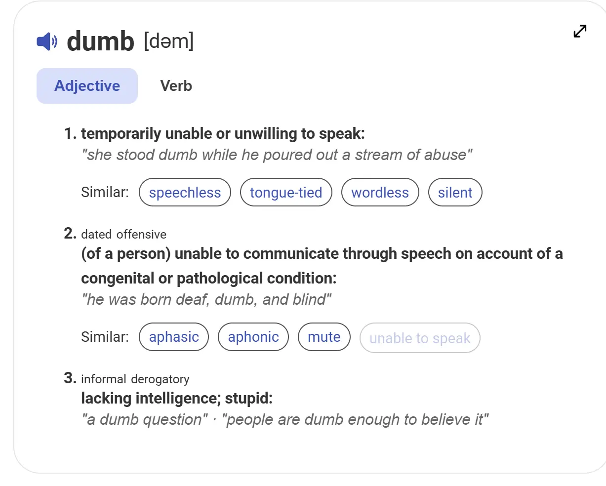 Dumb means one does not understand.This is one of the dumbest post ever posted on this forum.