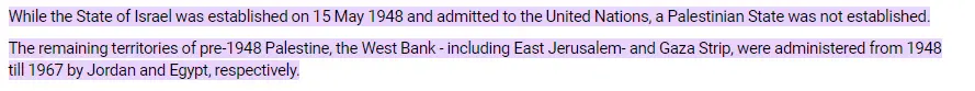 Israeli bullshit, of course.Palestine was never a state. No one can acquire territory from a state that never existed.