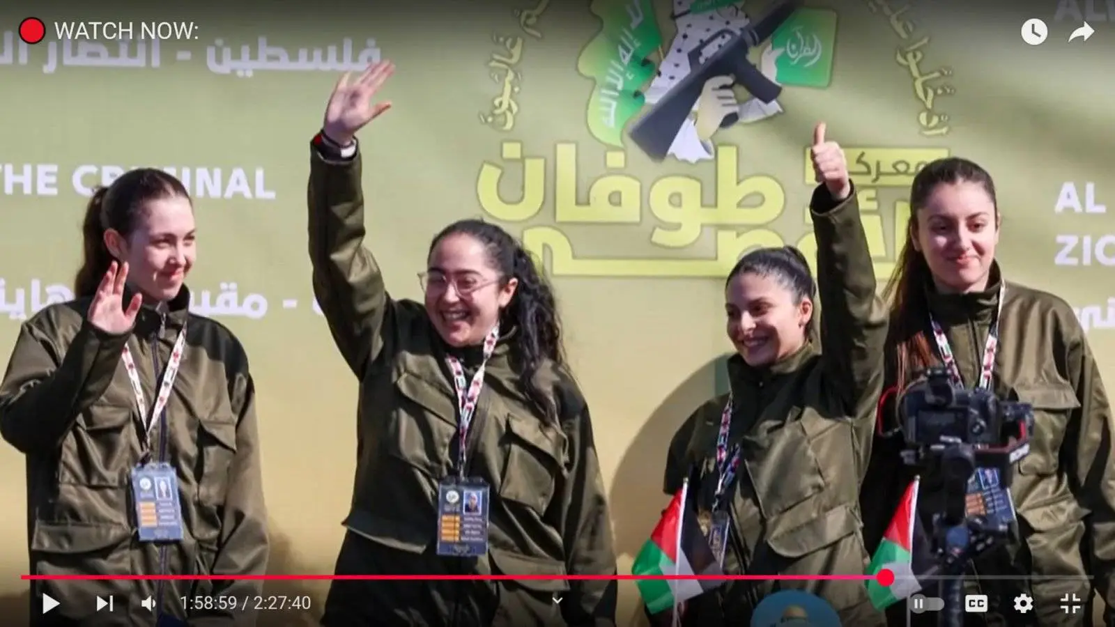 This has to blow the small minds of the supporters of the Zionist apartheid regime. It exposes them as fools who’ve accepted Zionist propaganda, but they never learn.Four happy, healthy young women. Surrounded by hundreds of armed Hamas fighters and do not appear to be the least bit intimidated.