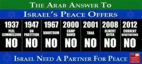 Ah, actually, no. Remembering the goal is peaceful relations between states, the Arabs have been the aggressors in every single instance. Certainly, remember that its a "political problem" and not a military problem, rockets have no place in the conversation and do nothing to further the goal of peaceful relations.