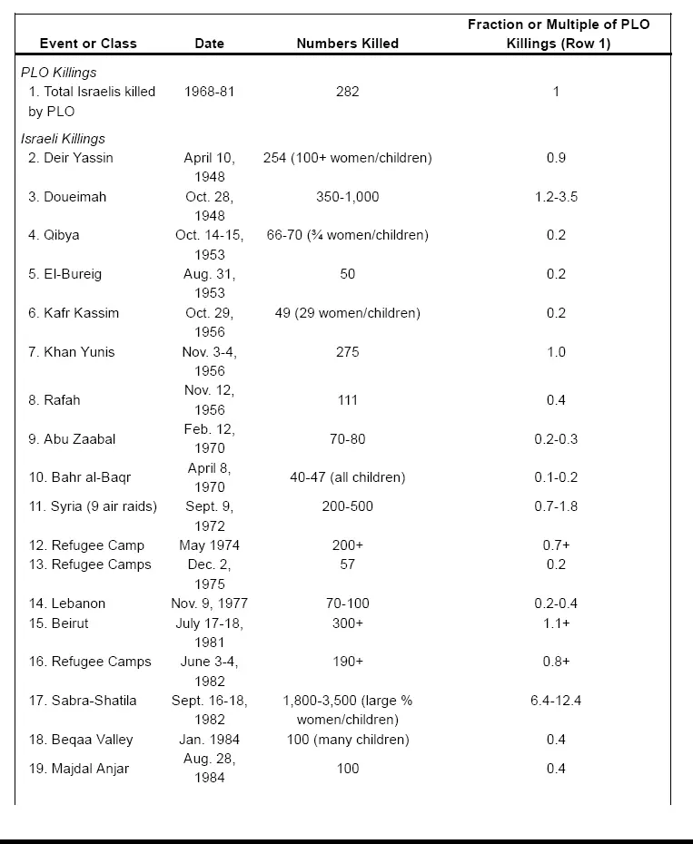 And the table above does not even include the last two murderous massacres of thousands of Palestinian civilians by the Israelis in Gaza.
