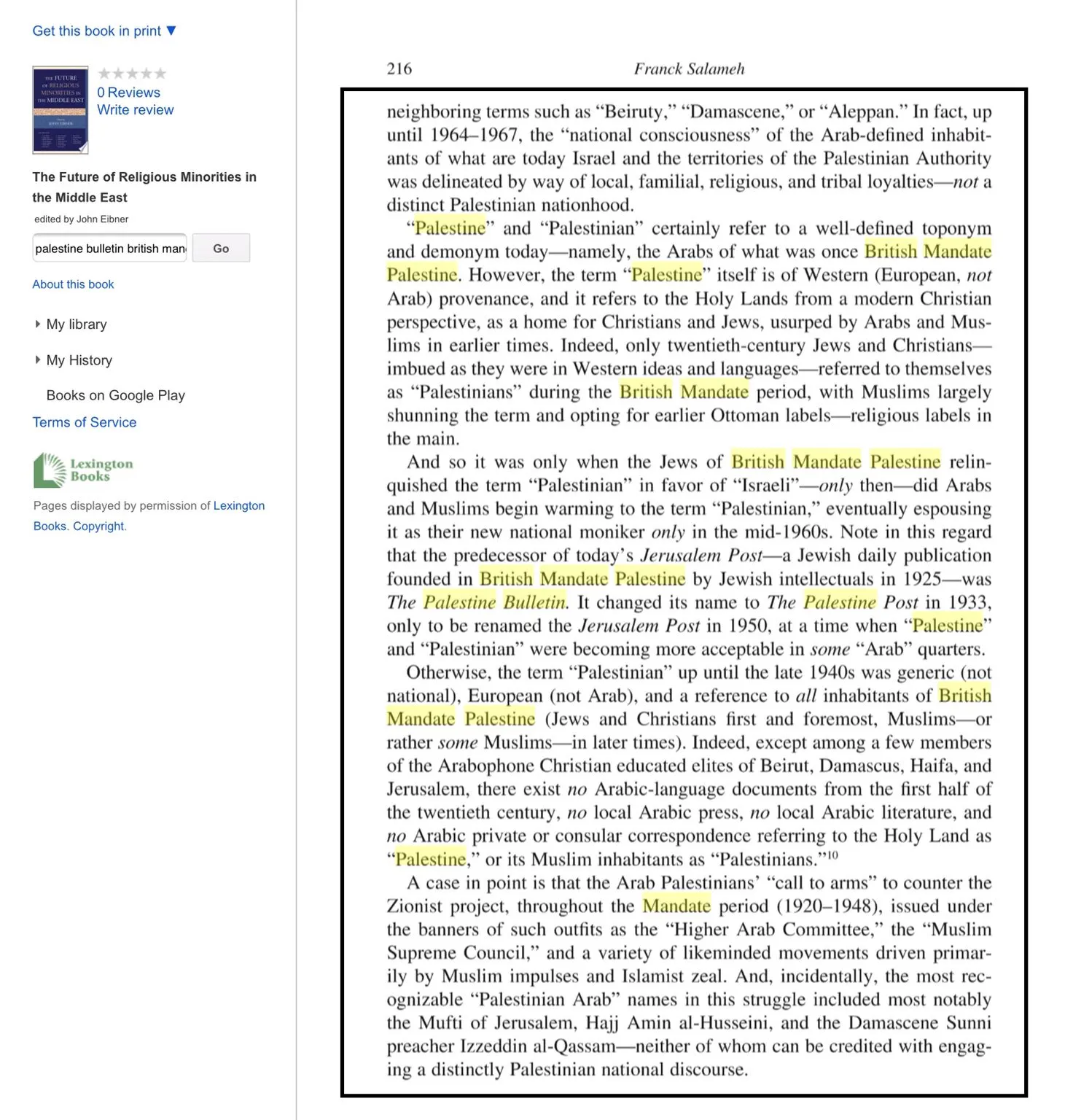 Palestine? Palestine was merely Britain’s fake name for the British Mandate, the purpose of which was ”reconstitution” of the Jewish Homeland, as stated in its terms. British Mandate Palestine ceased to exist in 1948 with Israeli statehood. Palestine is a generic European name. Are you really that dumb?