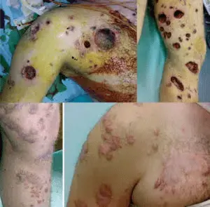 White phosphorus causes severe burns, often down to the bone, that are slow to heal and likely to develp infections. If not all fragments of white phosphorus are removed, they can exacerbate wounds after treatment and reignite when exposed to oxygen. White phosphorus burns on only 10 percent of a human body are often fatal. It can also cause respiratory damage and organ failure.