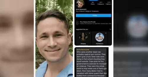 Kevin Newcomb of the City of Miami Fire Rescue was removed from duty and then fired on Friday following "antagonistic" messages he sent in a group chat about fallen Miami-Dade Police Officer Cesar Echaverry, a spokesperson told WSVN 7News.