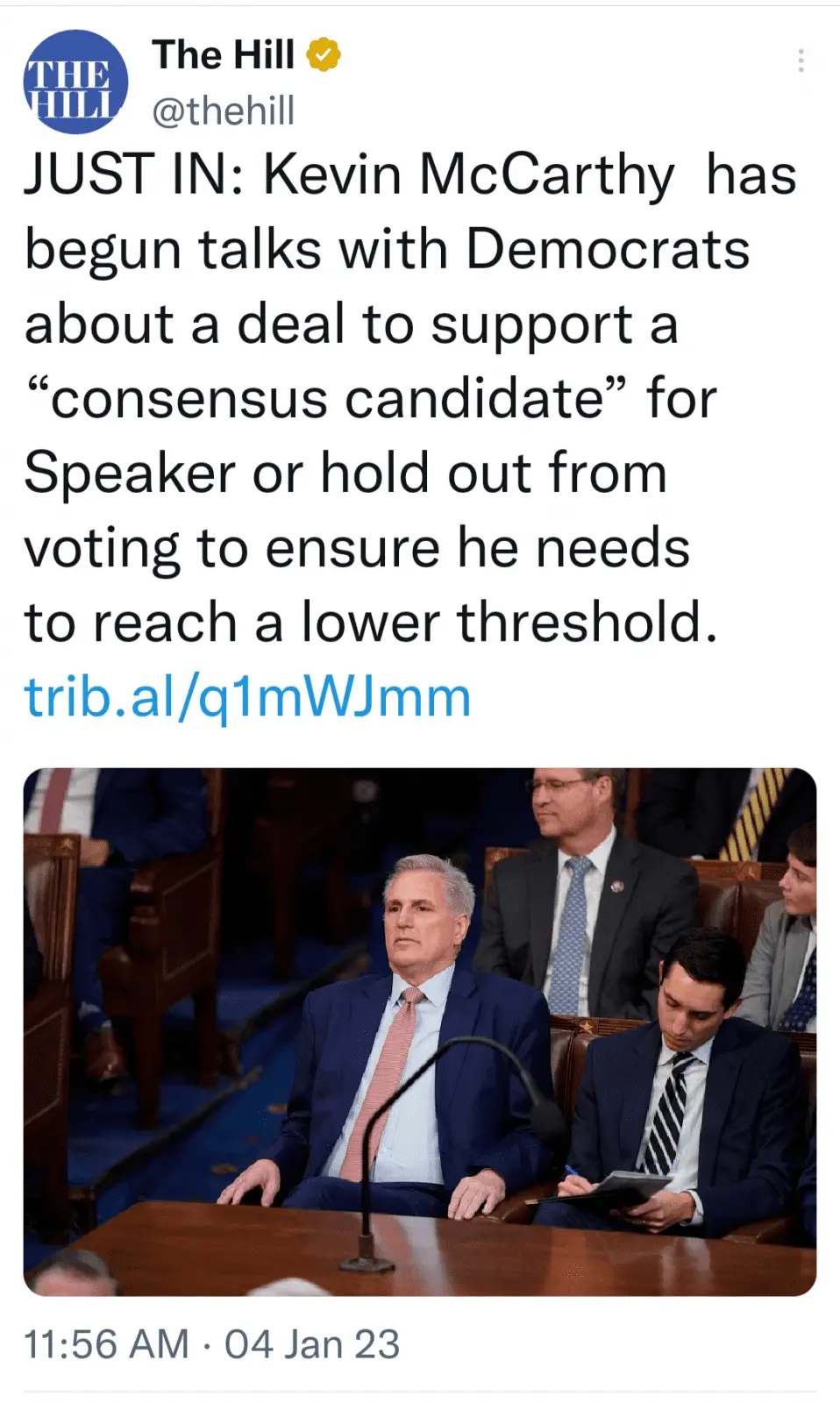 That is where a consensus candidate should be determined. The 200 are being as much "my way or the highway" as the minority who is obstructing. McCarthy is a lousy candidate. Move on and find someone acceptable to both sides. Scalise?I am against a very small minority trying to oppress the very huge majority. The 5% shouldn't be getting their way over the 95%. It was never supposed to be like that. Now, if you want to talk about more closer percentages, then I agree with you. If we had 125 voting for McCarthy and 100 voting against, I don't think the majority should run roughshod over the minority.