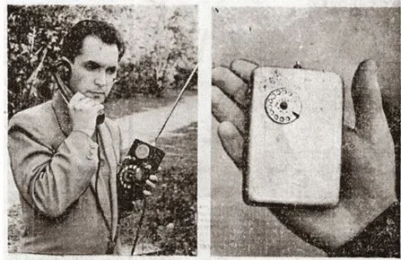 In 1957 Leonid Kupriyanovich presented a micro walkie-talkie radio version the size of a matchbox, 50g in weight and had 2 km operating distance.