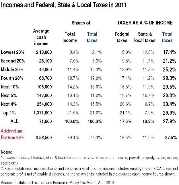 The lowest income earners pay the largest percentage of their income to taxes at the state and local level.