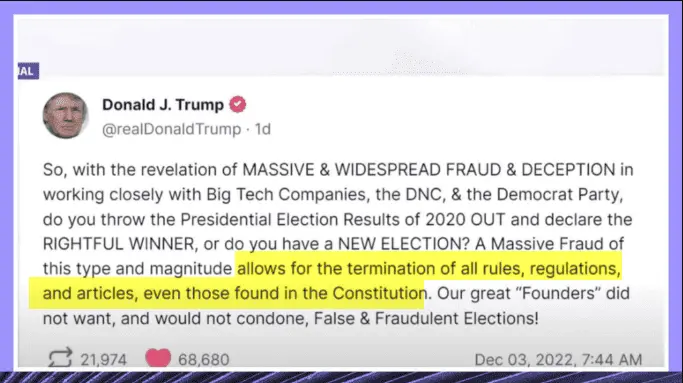 To clarify, I support certified democratic elections and the rule of law as the foundational precepts of the United States.