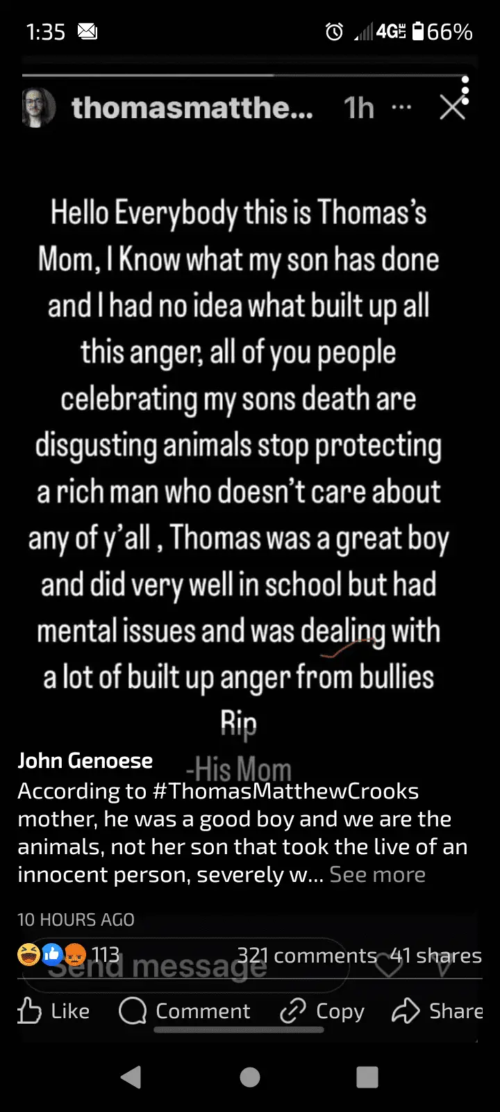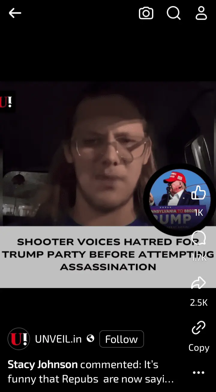 1.2M views · 1.9K reactions | 🚨Before attempting to assassinate Donald.Trump at a rally in Butler, PA, Thomas Matthew Crooks expressed his hatred for Trump's party. The violent attack, captured on footage concluded with Crooks being killed by a Secre