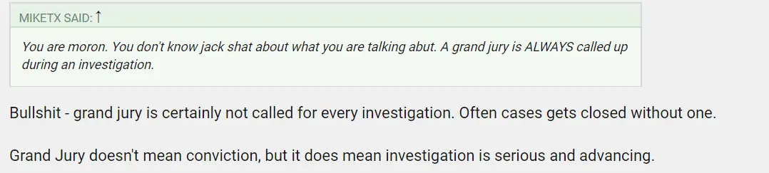 You are moron. You don't know jack shat about what you are talking abut. A grand jury is ALWAYS called up during an investigation. Muller and his guys are there to find stuff TO present to a grand jury. It's not like CSI where convictions happen just because a hot chick says so. Continue watching those for your fap Sessions, but stop quoting them as facts. It makes you look dumb.