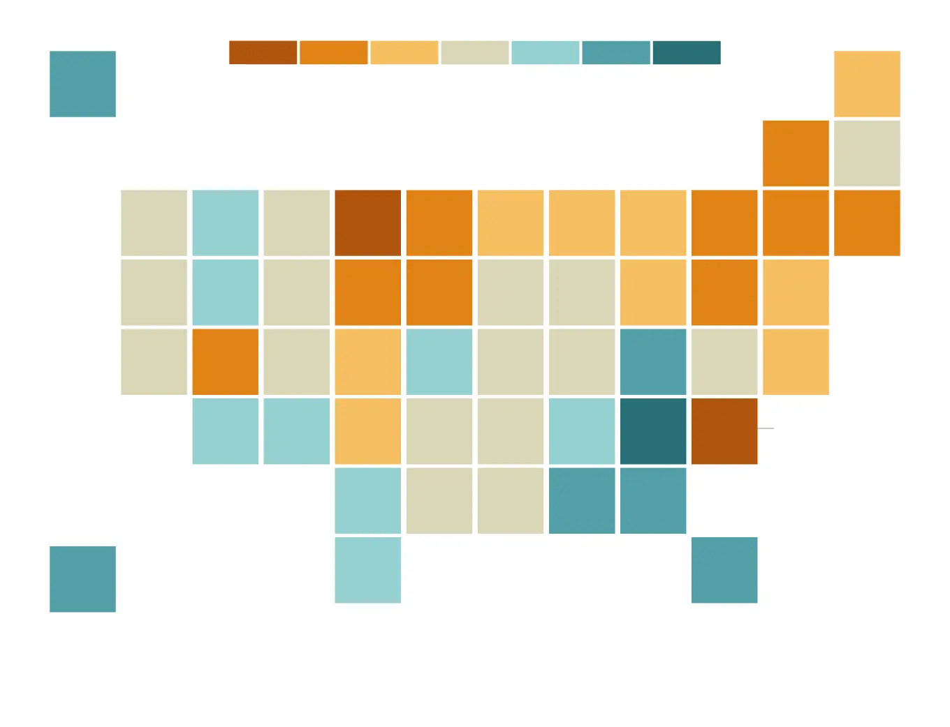South Carolina had the highest representation ratio, at 1.5, meaning it contributed 50 percent more than its share of the country's eighteen- to twenty-four-year-old population. Florida, Hawaii, Georgia, and Alabama round out the top five. On the other end of the spectrum—jurisdictions that contribute fewer recruits than their share of eighteen- to twenty-four-year-olds, or those with ratios less than 1.0—are Washington, DC, North Dakota, Massachusetts, Utah, and Rhode Island.