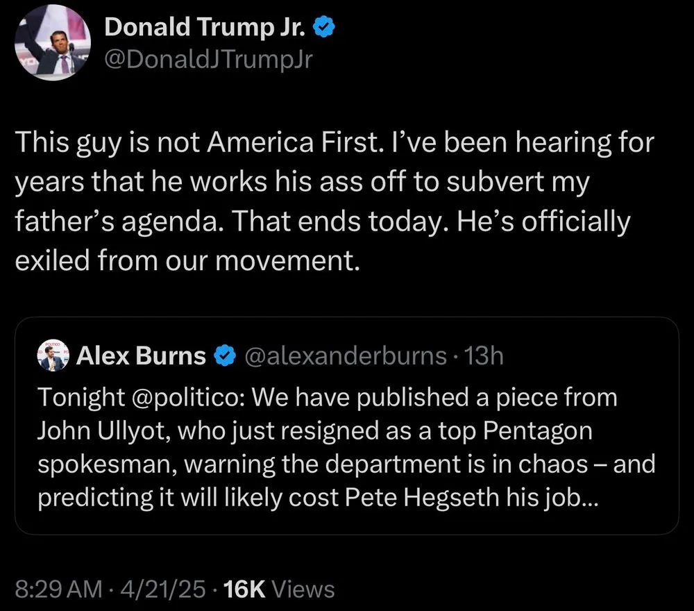 But for how much longer? Will the impending inflation triggered by tariffs likely sending Don's disapproval rating higher than it already is be the catalyst?