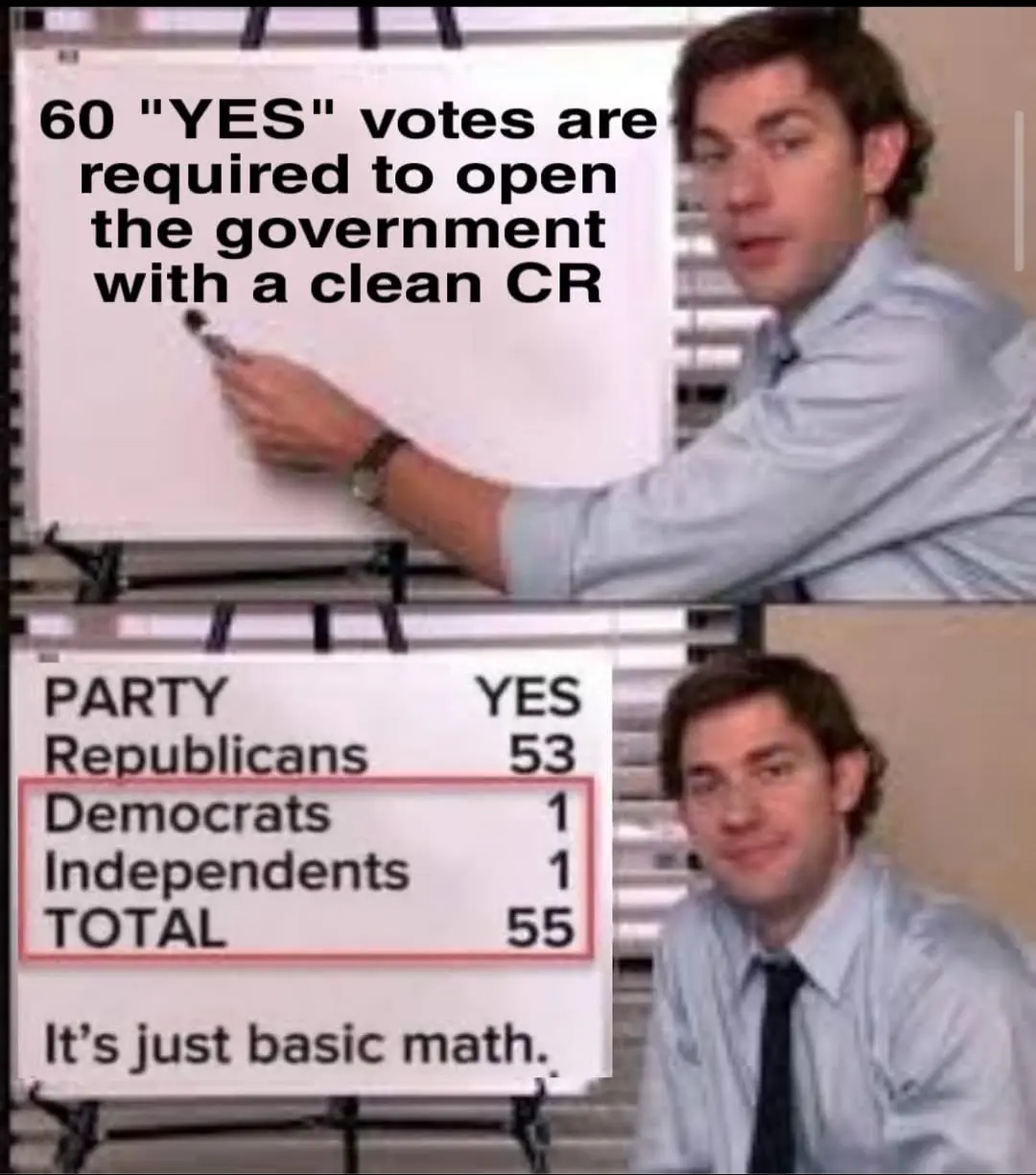 That narrative has always been a lie. If you don't have 60 votes in the Senate, then you don't have control of the Senate.Republicans also controlled all three branches of the federal government along with SCOTUS, so it's hard to see how a shutdown materialized without their support (or indifference):