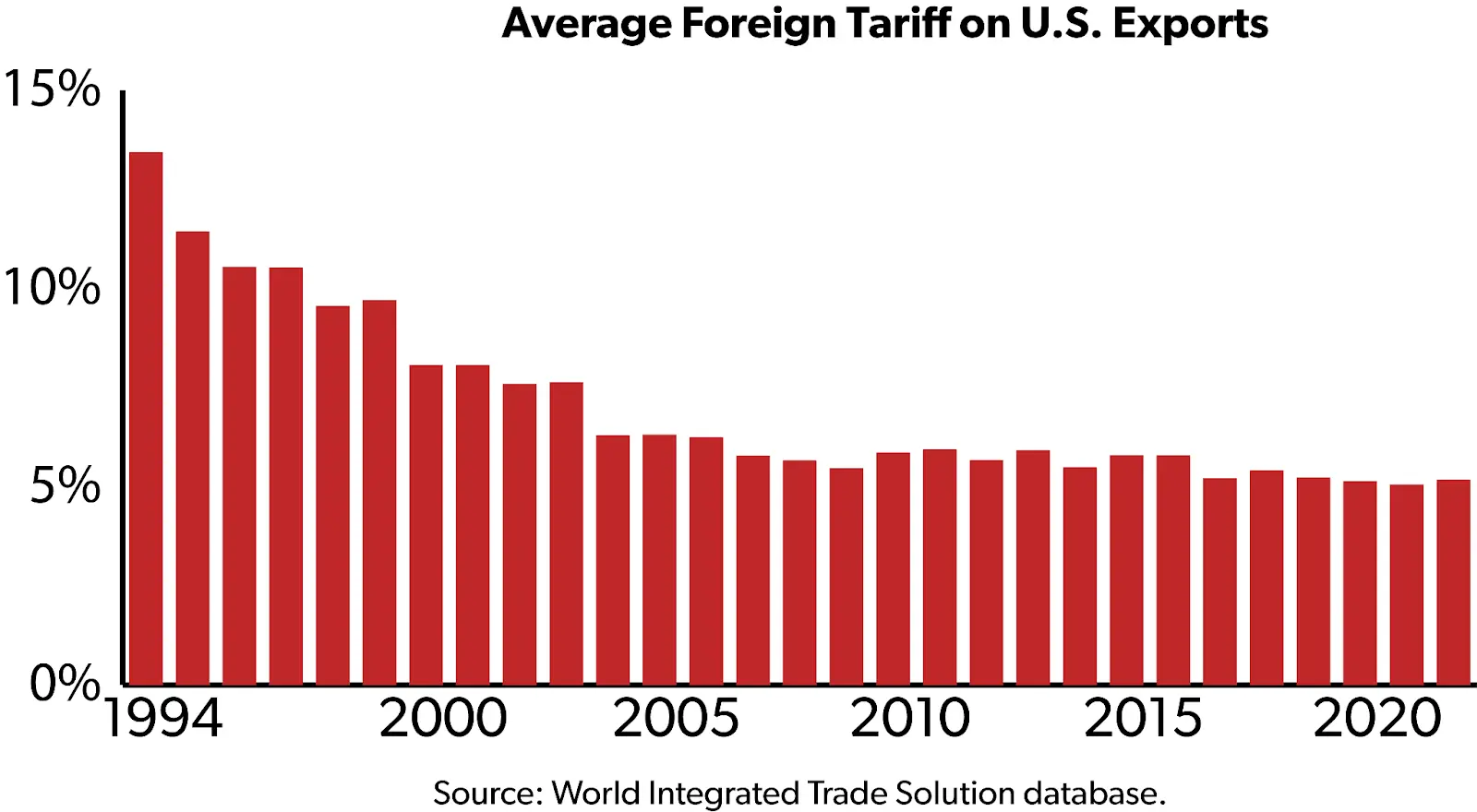 Contrary to Trump's claims of increasing tariffs on US exports, the average tariff is down by 2/3 over the last 20 years.