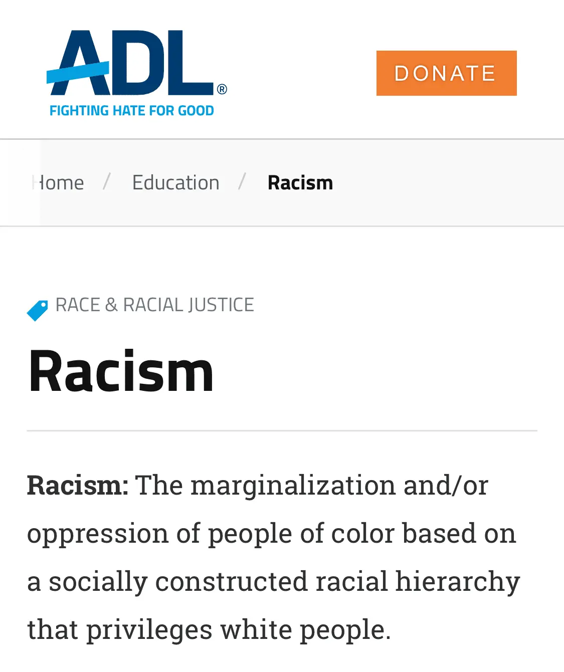 That definition doesn’t even come close to the real definition. They’re not even first cousins.So does the Anti-Defamation League.