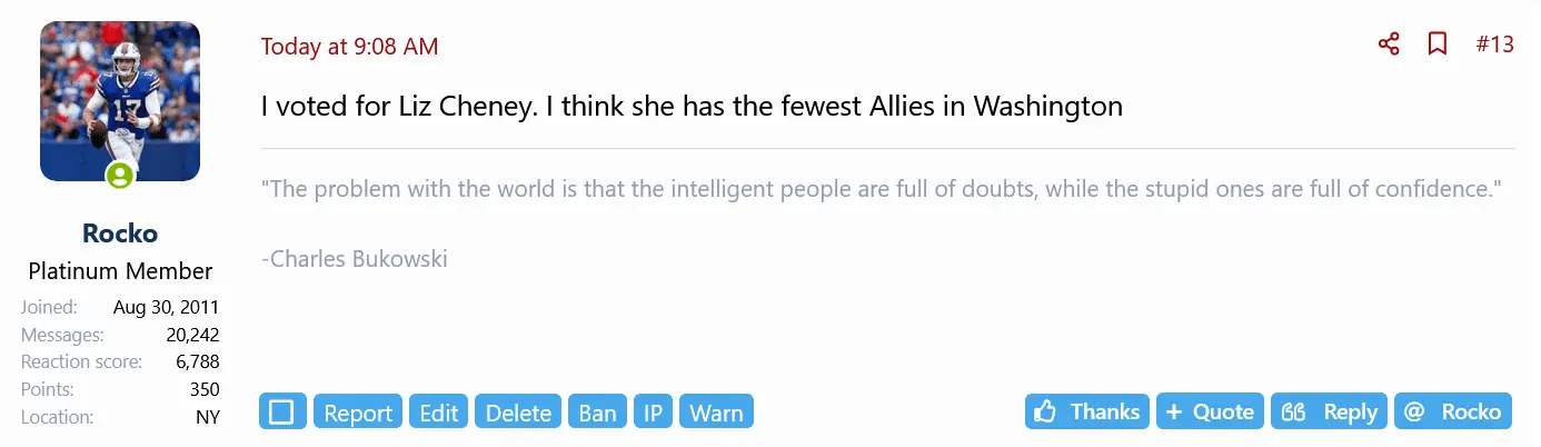 I'm trying to figure out why that schmuck Biden isn't leading the vote.No you said you voted for Liz Cheney in post #13