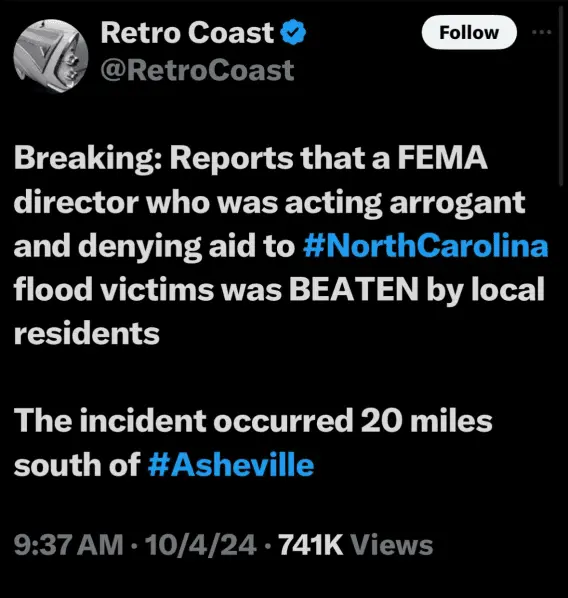 With roads and bridges washed out all over the placeThey are still searching homes for bodies dipshit. This isn't a metro area. For the most part it's rugged and rural terrain.